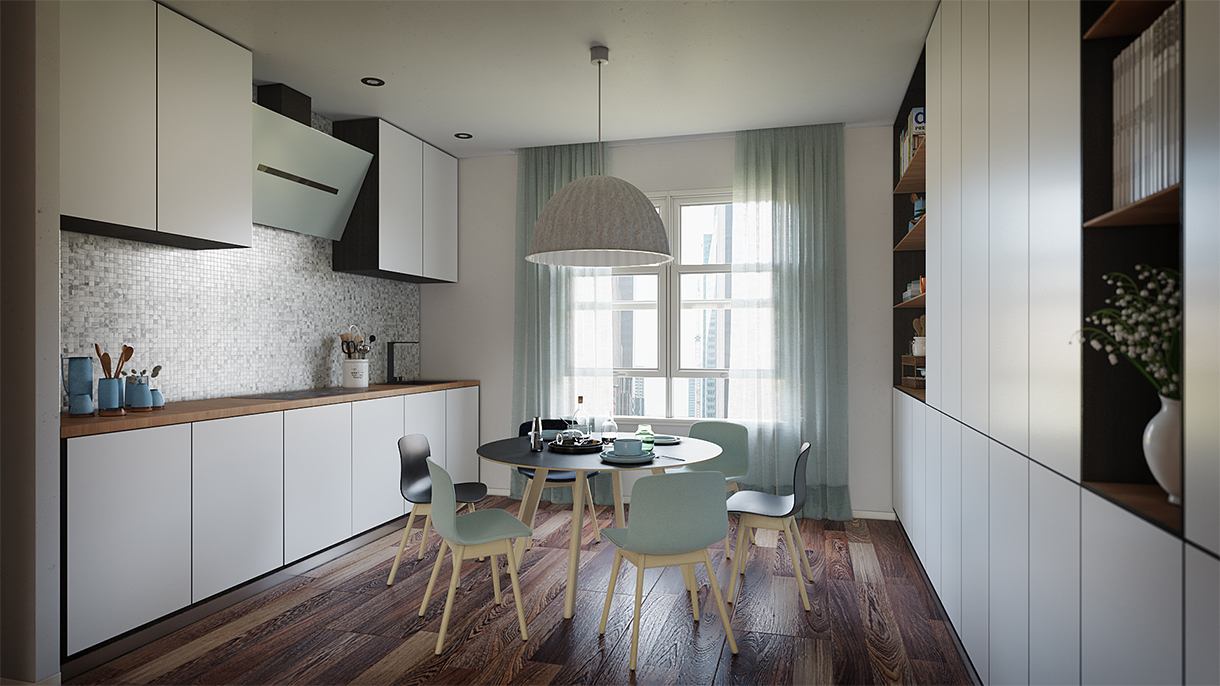 Un'armoniosa fusione di stile industriale e accenti nordici: colori pastello e legno scaldano l'ambiente, mentre la cura per i dettagli crea un'atmosfera serena. La luce naturale amplifica il design minimalista, in un'esperienza visiva unica e fedele allo spirito scandinavo.