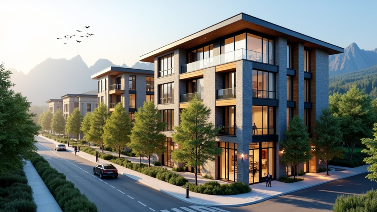 Incastonate tra maestose montagne e vegetazione rigogliosa, queste eleganti residenze rappresentano il perfetto connubio tra comfort abitativo e bellezza naturale. Gli edifici, caratterizzati da linee pulite e ampie vetrate, si inseriscono armoniosamente nel paesaggio circostante.