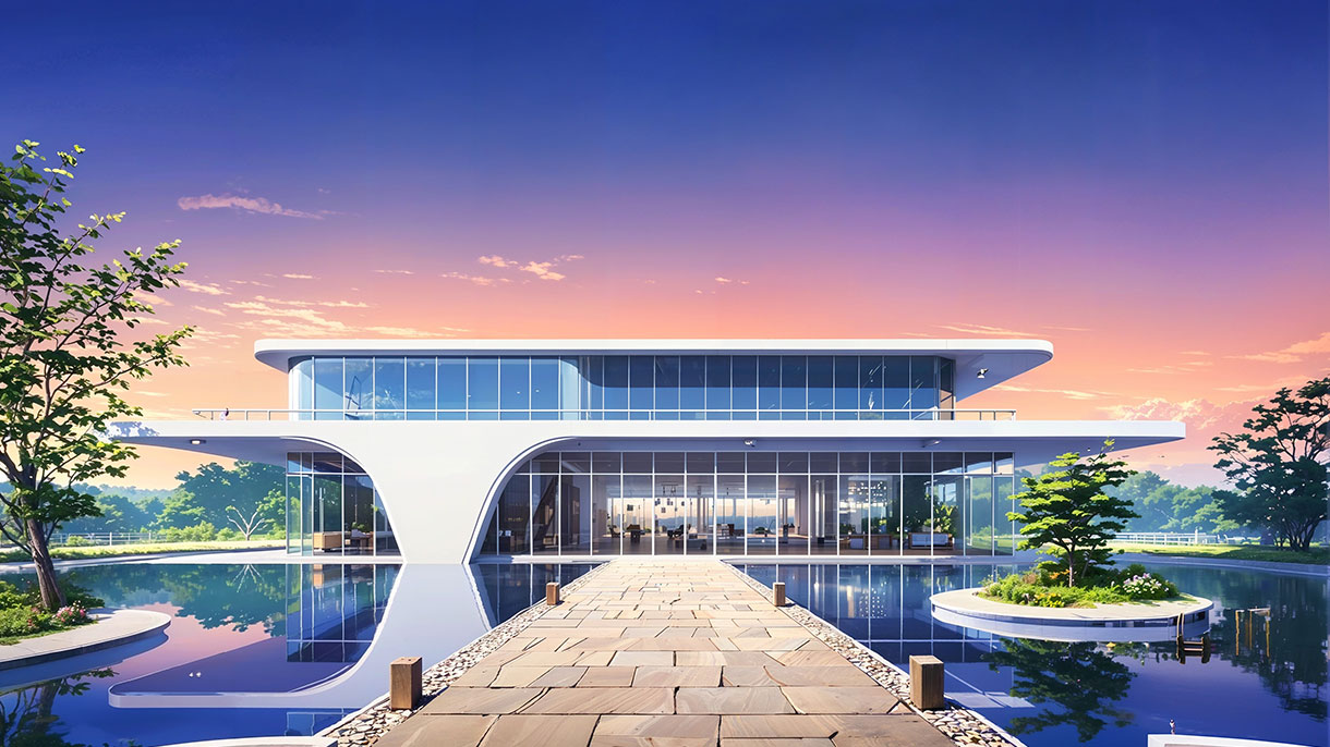 Onde di vetro: L'innovazione architettonica incontra il tramonto